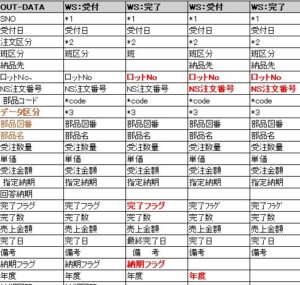 図:フィールド辞書の例(WS×複数 ⇔ OUT-DATA)